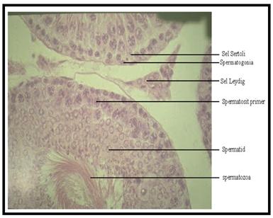 Sel-sel Leydig atau sel interstitial disebut menempati sebagian besar ruang antara tubulus seminiferus. Tubula seminiferus yang mengulung, ditutupi oleh lapisan epitel germinal yang bisa berisi sampai dengan lapisan sel. Testis kiri biasa tergantung lebih rendah dibanding testis kanan.